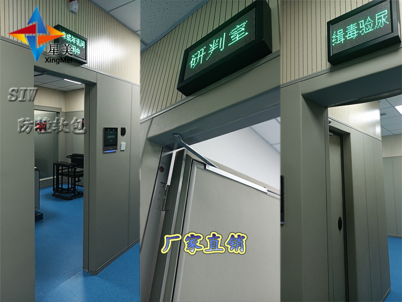星美建材防撞材料廠家以打造全能談話室為出發點,集軟裝施工設計、安全防撞材料生產,談話平臺搭建于一體,力求每一項產品都精益求精,并專注于各類詢問室設計軟包裝修的整體解決方案。采用一種以聚乙烯棉為基材、阻燃皮革飾面,用無膠復合工藝加工成型,具有 防撞效果、防水、阻燃、隔音。一般墻面施工方案為,2.4米以下使用新型防撞墻板,2.4米以上使用木質吸音板,既滿足了詢問室取證對室內吸音效果,材料也經濟實惠。
