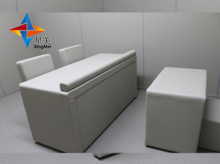 談話室要做到建設利于工作,安全保密,經濟實用,簡樸莊重就需要對墻面進行軟化處理,同時也要具備隔音消音及阻燃的功能。出產的防撞皮革軟包就集防撞、阻燃、消音、美觀為一體,一次解決建設需要達到多重標準的難題。