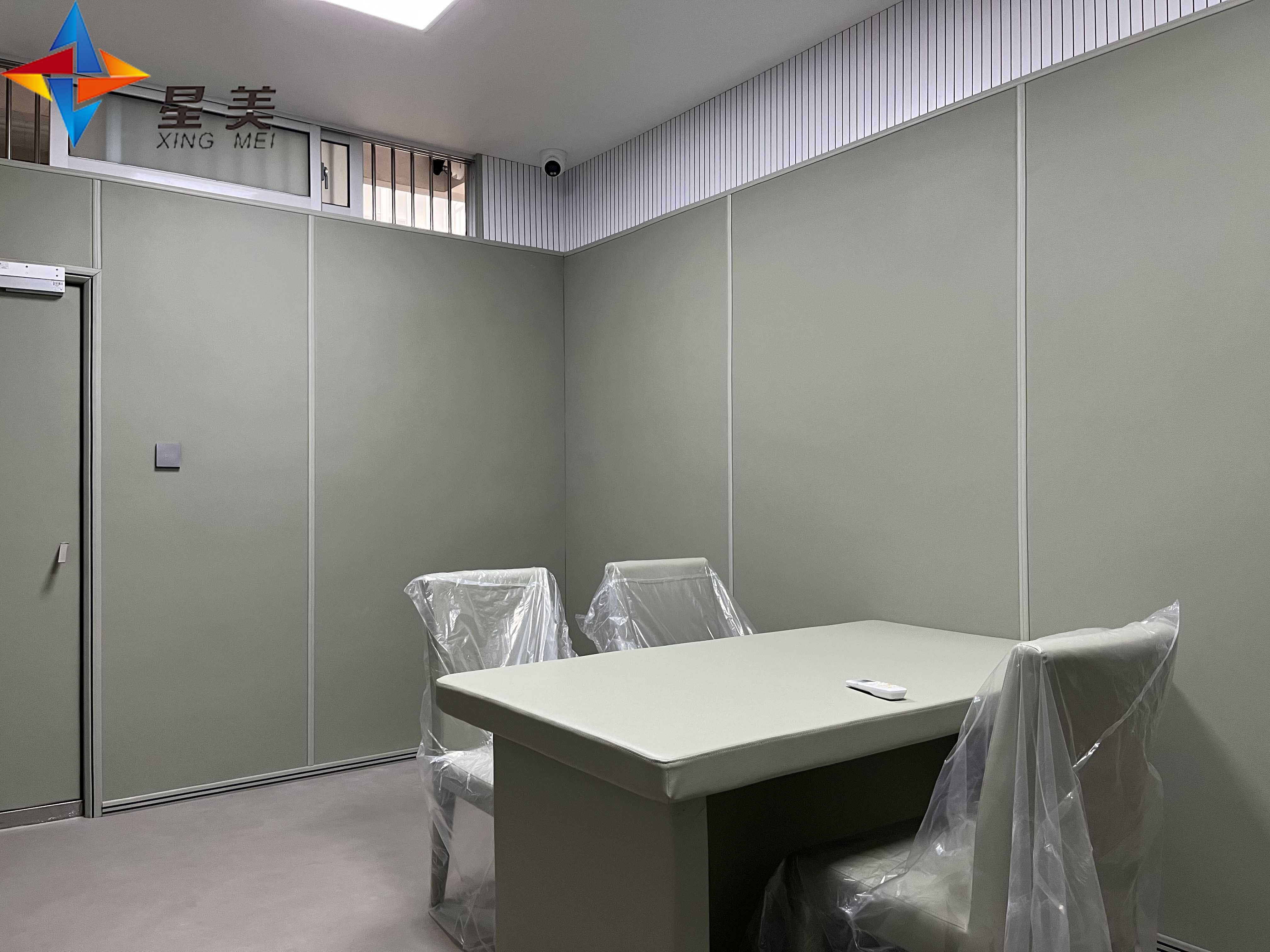 談話室內(nèi)所能觸及的尖銳物體,硬化物體都需要做防撞防護。為防止在辦案過程中,犯人有過激的行為,選擇自殘或者傷害執(zhí)法人員的情況。需要有三種特性,防火、防撞、吸音(這三個特性顯得尤為重要,符合國家單位場所的材料標準要求(消防、環(huán)保、防火、吸音)。